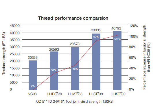 ·Super High Torsional Strength: 70% extra torsional strength over API connection;